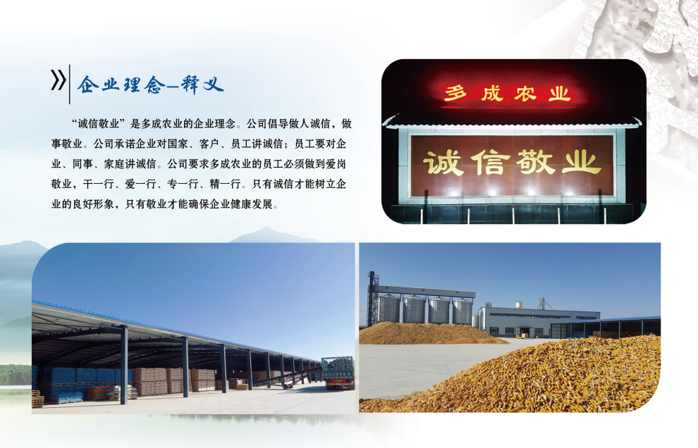 "誠(chéng)信敬業(yè)“是多成農(nóng)業(yè)的企業(yè)理念。公司倡導(dǎo)做人誠(chéng)信,做事敬業(yè)。公司承諾企業(yè)對(duì)國(guó)家、客戶、員工講誠(chéng)信;員工要對(duì)企業(yè)、同事、家庭講誠(chéng)信。公司要求多成農(nóng)業(yè)的員工必須做到愛崗敬業(yè),干一行、愛一行、專一行、精一行。只有誠(chéng)信才嫩個(gè)樹立企業(yè)的良好形象,只有敬業(yè)才能確保企業(yè)健康發(fā)展 |